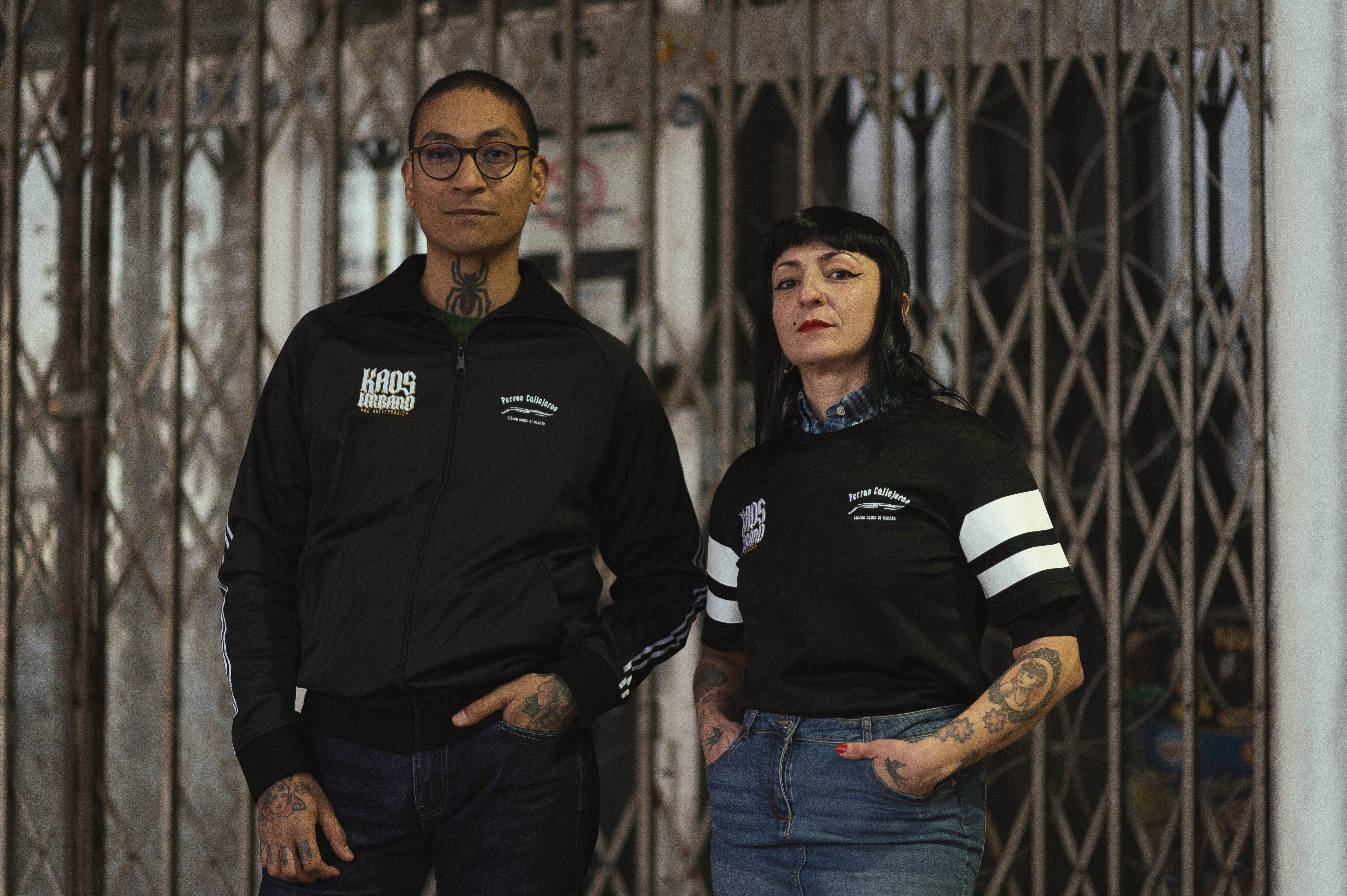 Chaqueta de chándal con cremallera, con los logos de Kaos urbano y Perros Callejeros bordados en el pecho y en la espalda la estampación.